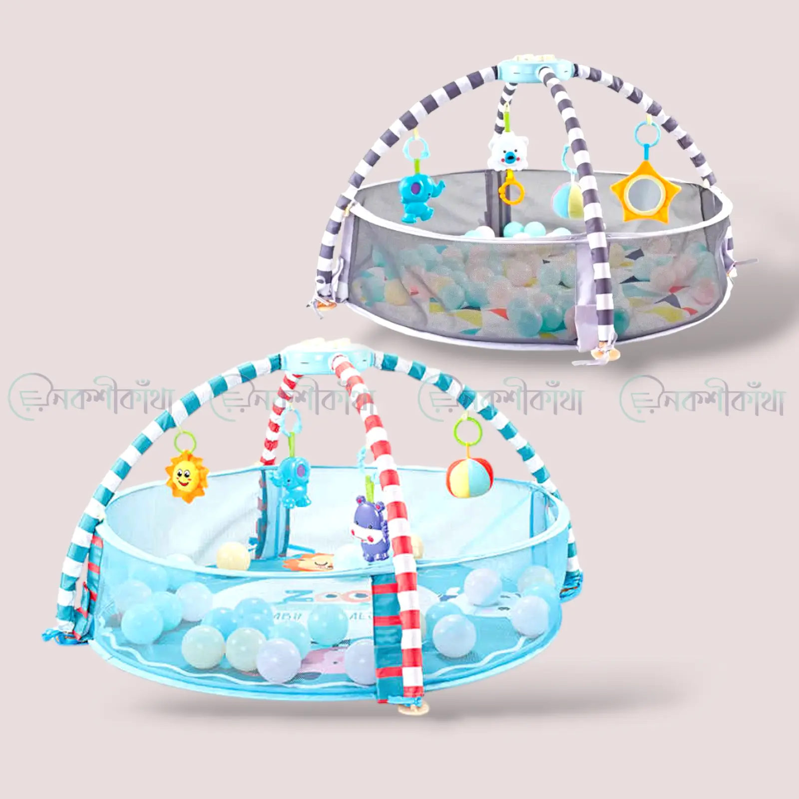 - প্যাকেজে অন্তর্ভুক্ত: অ্যাকটিভিটি জিম, বল পিট, এবং নরম রঙিন বল।