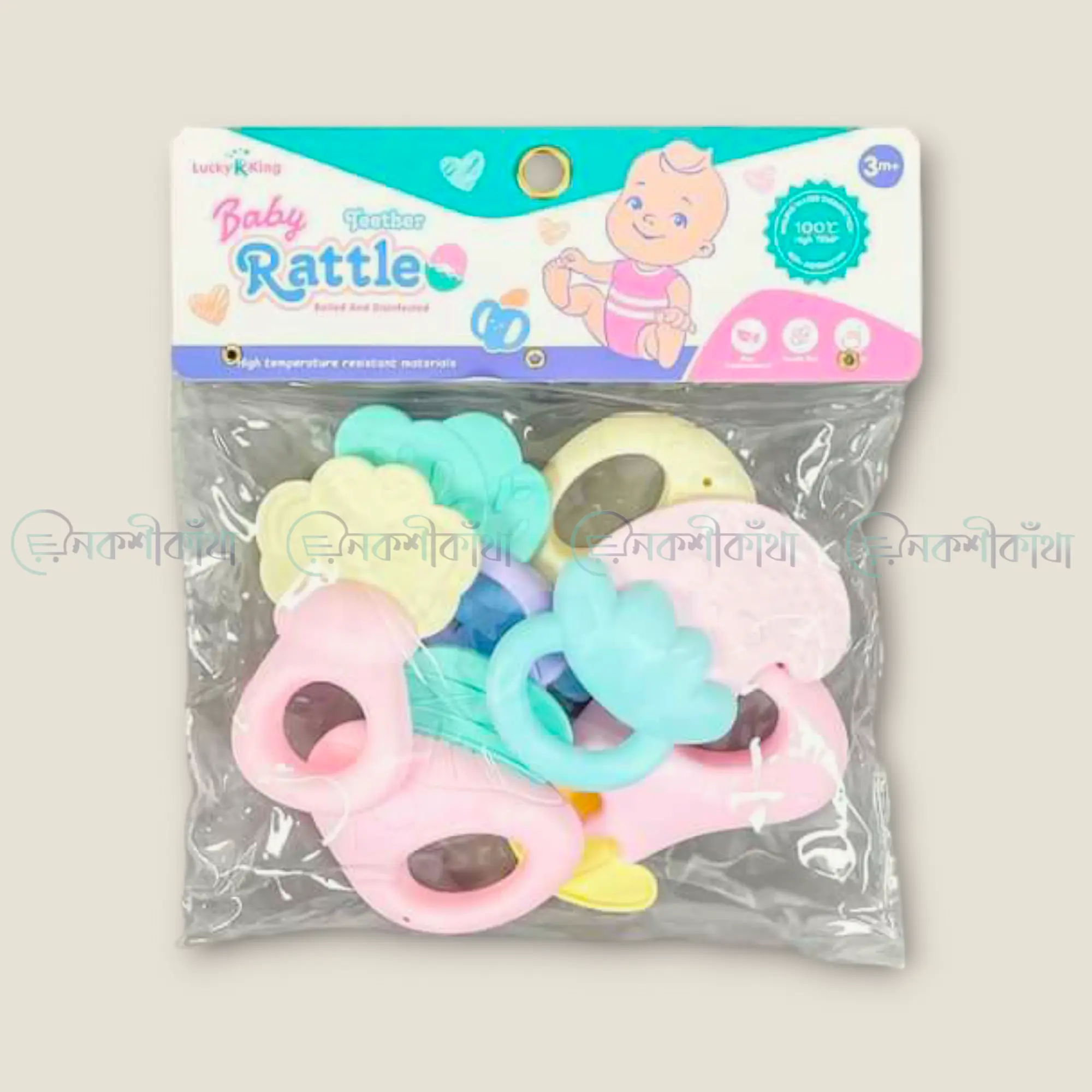 - র্যাটল শব্দ: প্রতিটি টিথারে রয়েছে একটি র্যাটল শব্দ, যা শিশুর মনোযোগ আকর্ষণ করে এবং তাদের শখের খেলনা হতে সাহায্য করে।