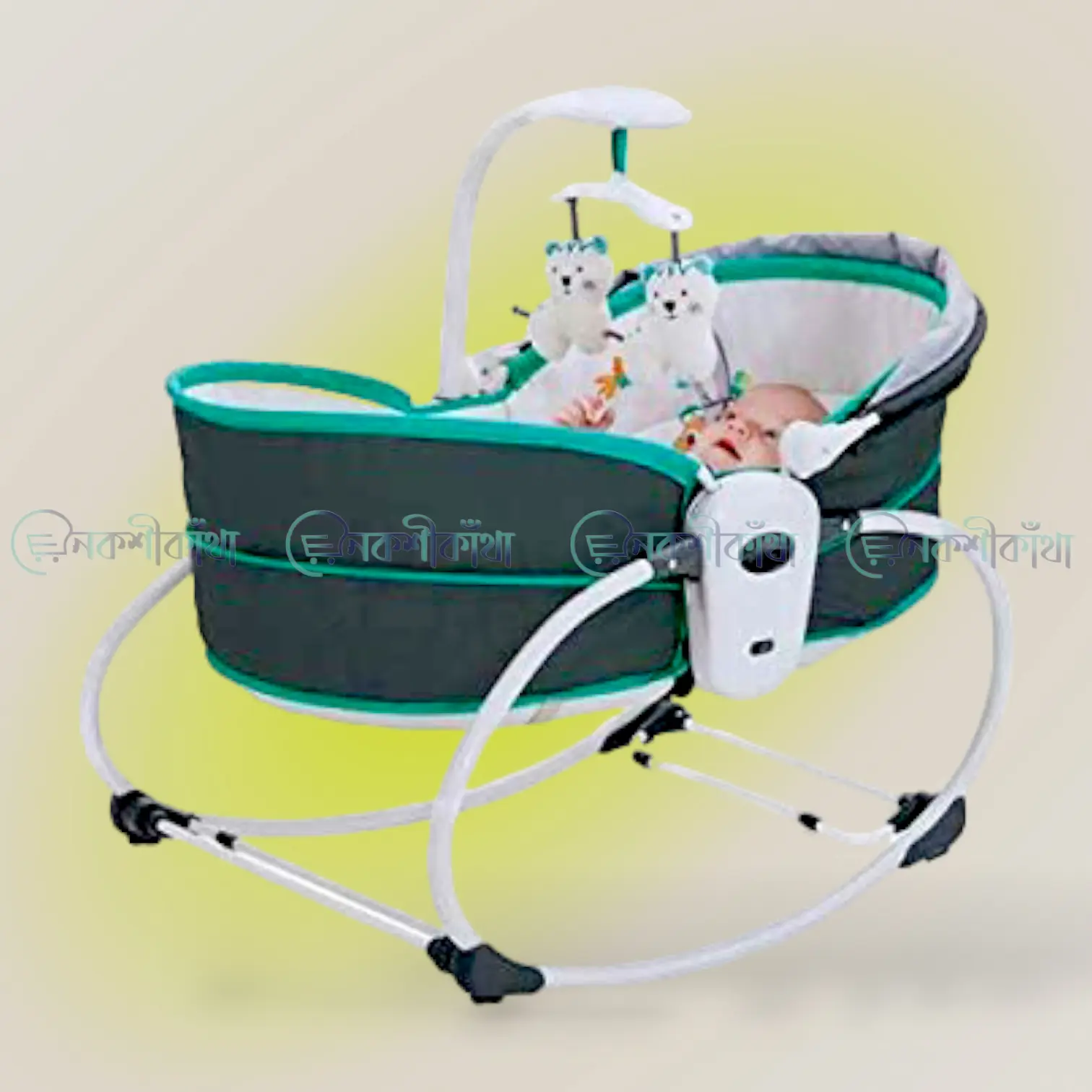 - বহুমুখী ফাংশন: ৫-ইন-১ ডিজাইন – সুইং, রকার, স্লিপার, ফিডিং চেয়ার এবং বেবি বেসিনেট।