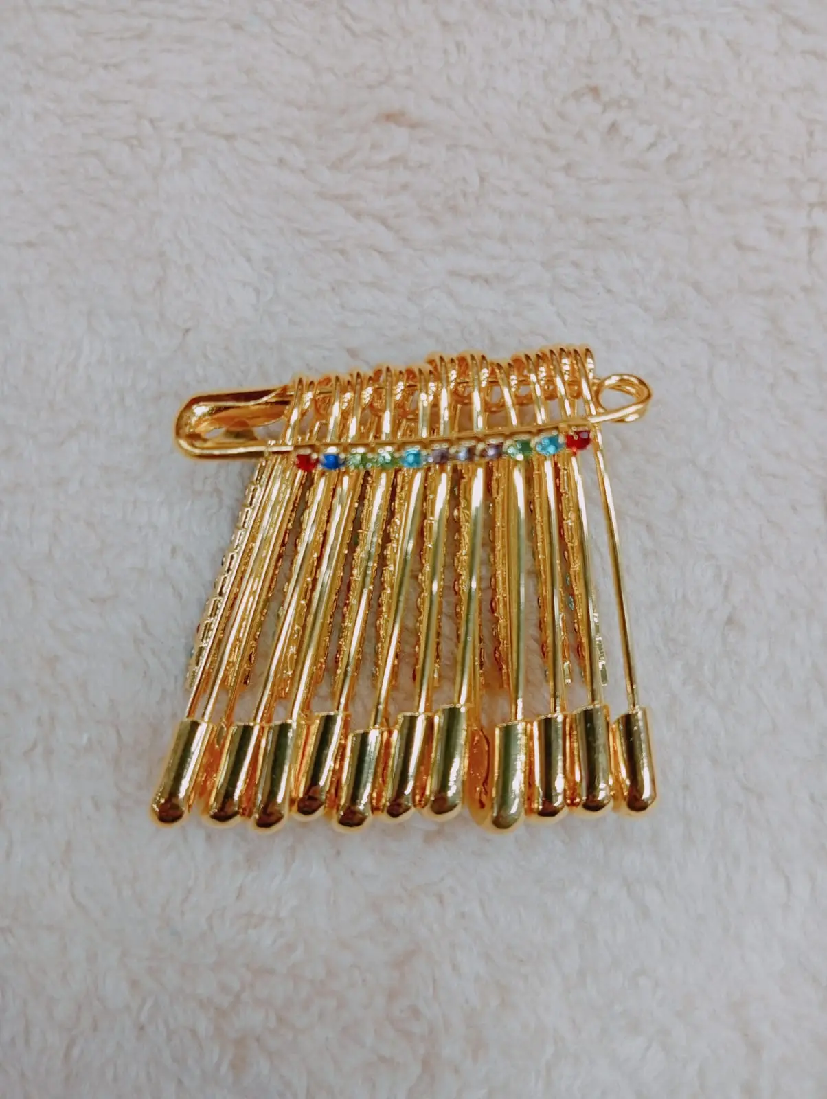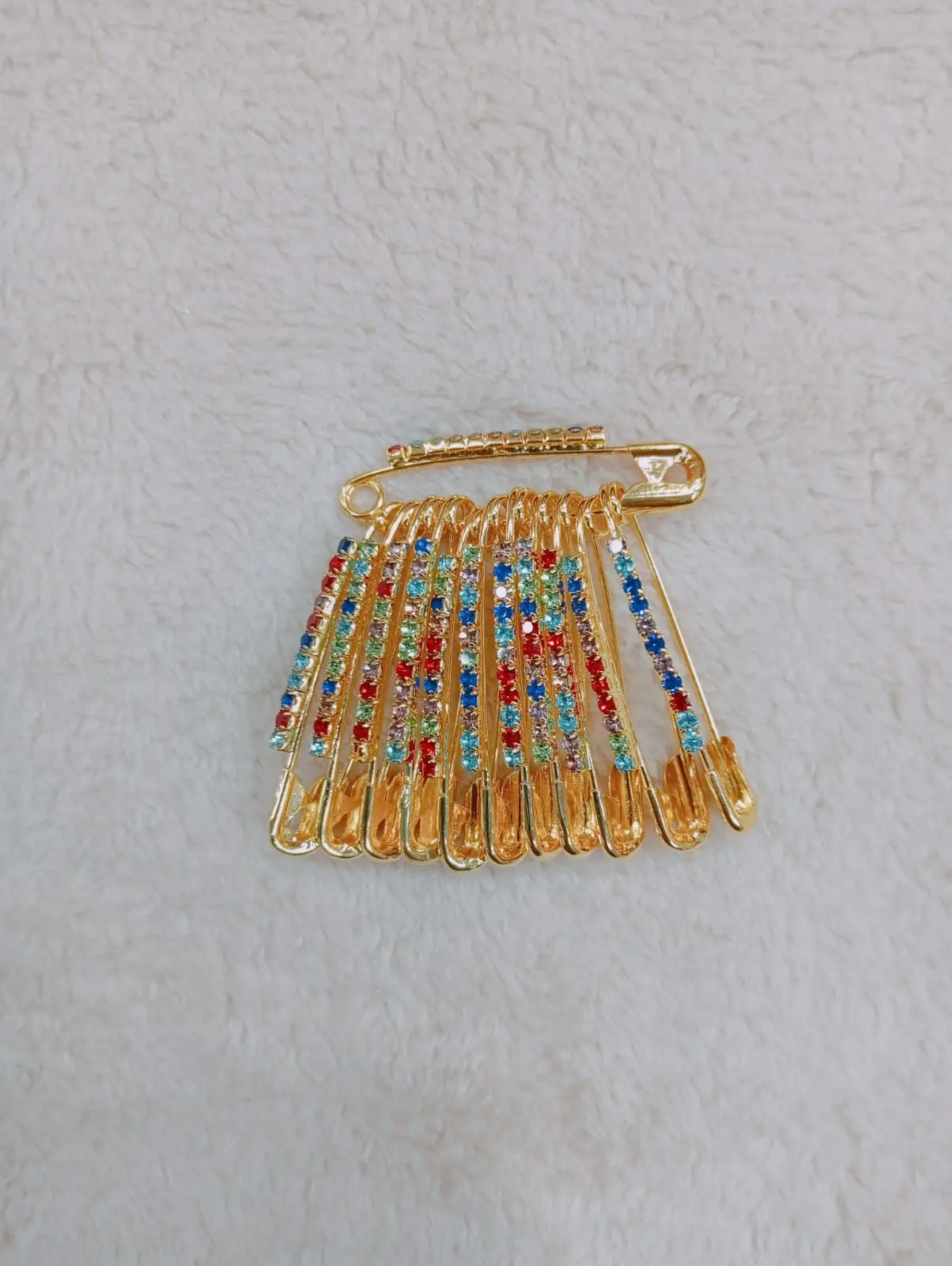 Golden Stone Hijab Pin – 12 Pieces | Brooch Safety Pin | One Side of Safety Pin For Saree (Copy)